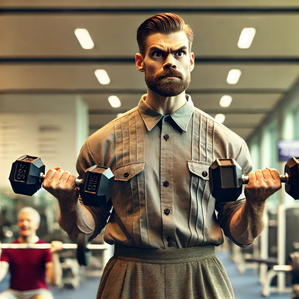 자신의 능력을 초과하는 무게를 들며 고통에 찬 표정을 짓는 사람들을 볼 수 있습니다.